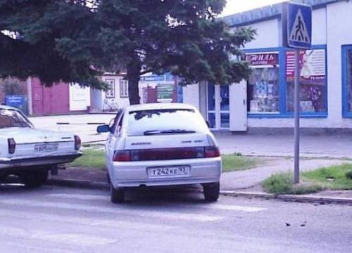 » Прям на пешеходном переходе и тротуаре